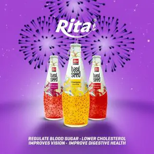 Hãy cùng thưởng thức và khám phá hương vị ngọt – mát – lành của nước hạt é hương trái cây mang thương hiệu Rita của chúng tôi.